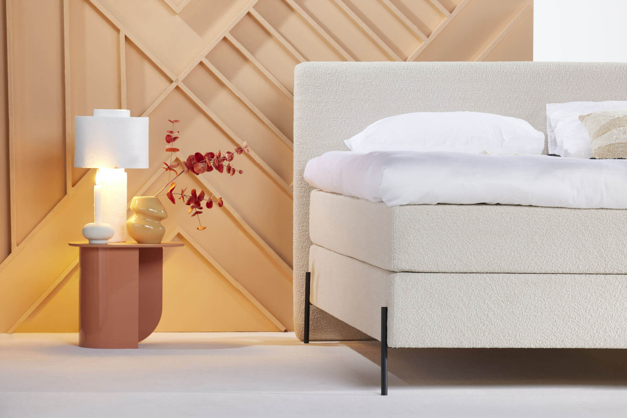 De Eastborn boxspring Plum heeft een mooie strakke uitstraling en een fijne in- en uitstap hoogte. De vaste boxspring is inclusief Eastborn Colour matrassen, die voorzien zijn van foam met een flexibele drukverdeling en 5 zone ondersteuning.